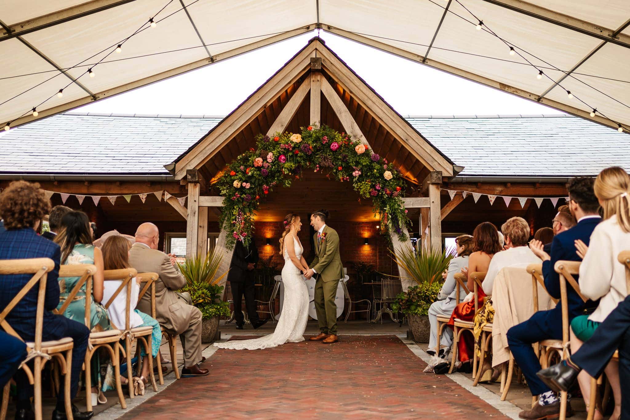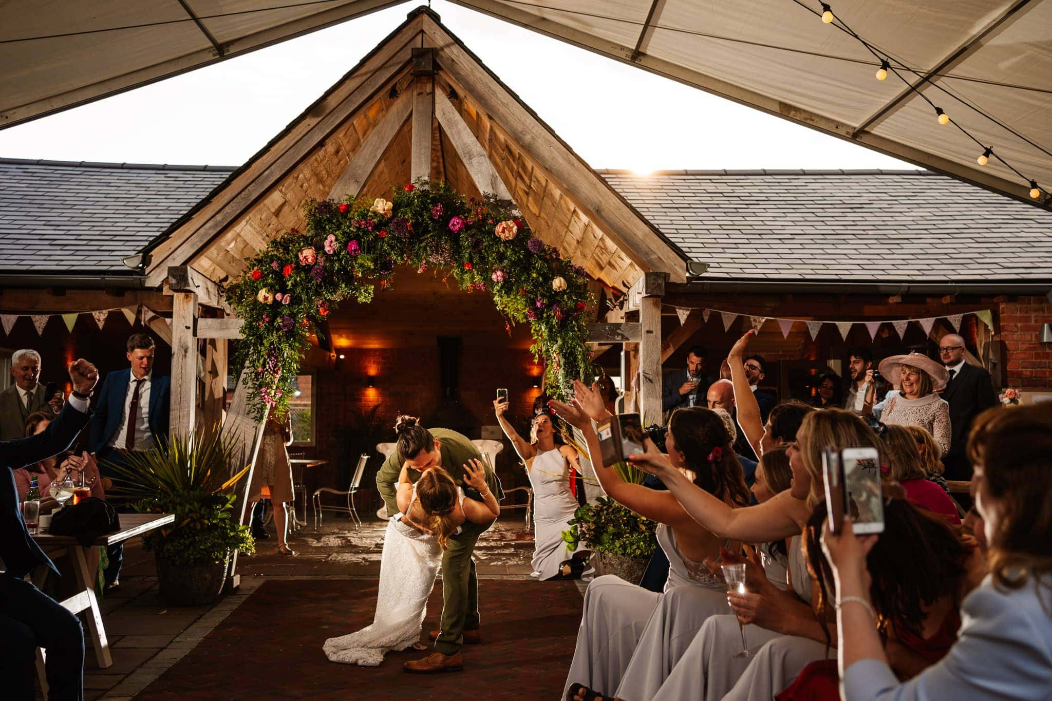 Although my preference is always for capturing people naturally and those precious little moments and interactions between people, it’s always going to help having a stunning venue as a backdrop. There are so many options for couple portraits in the beautiful gardens and if the weather gods are shining down, they have some stunning sunsets at Cider Mill Barns. The orchard with it’s leading lines through the tress is a favourite spot of mine but then the wooden arch structure at the entrance can also be a great location too.