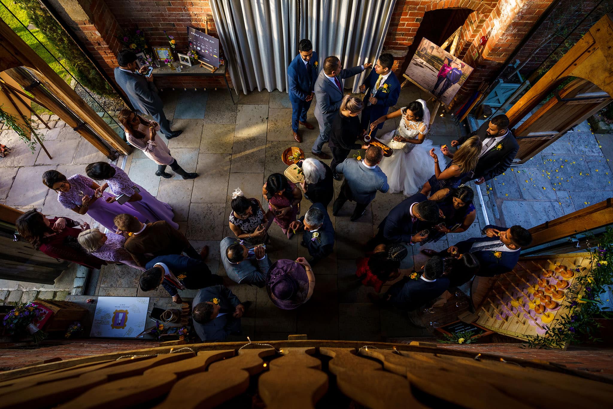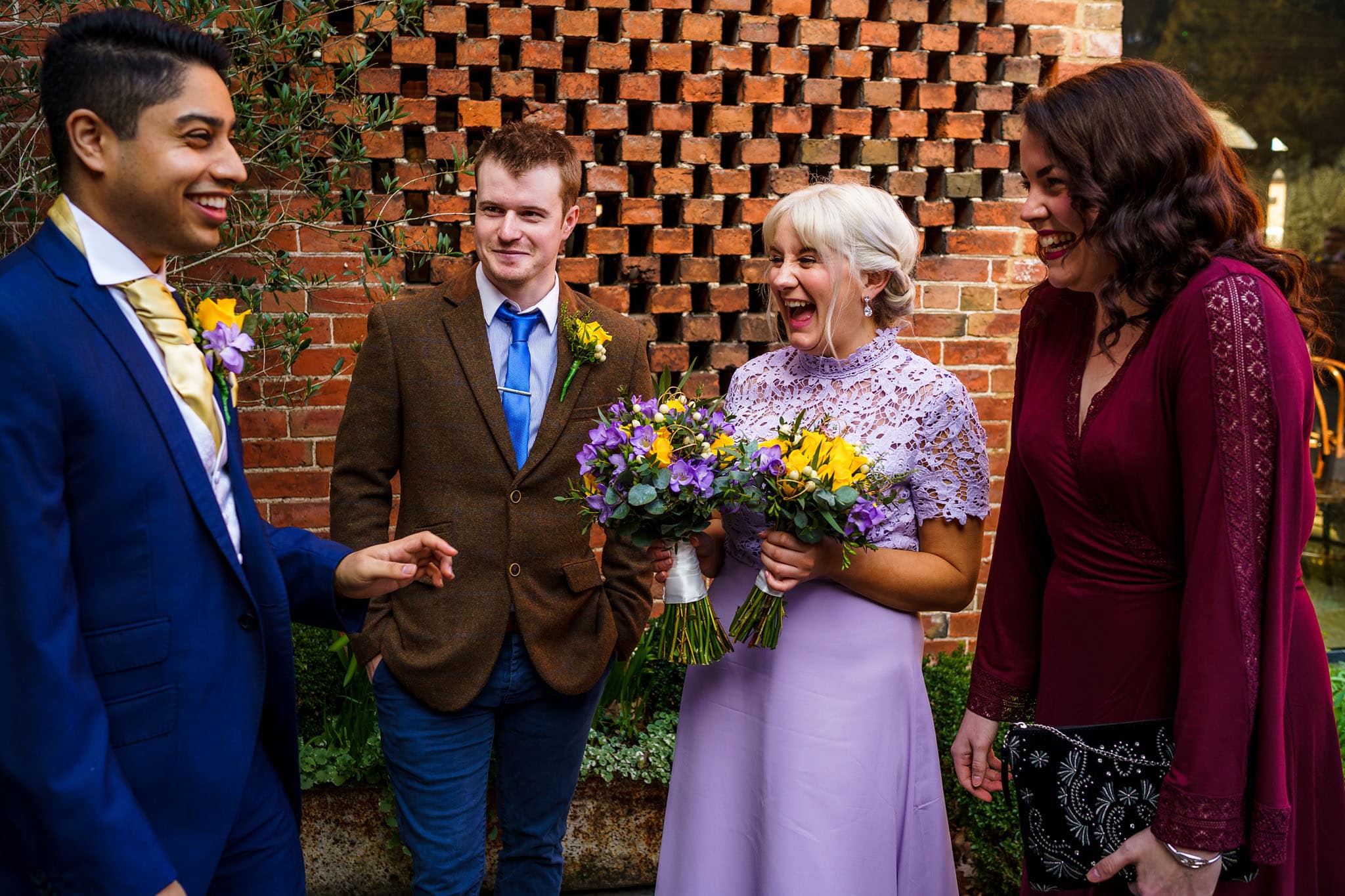 The drinks reception started with confetti outside in the courtyard. We then did a few family group shots and a few couple shots before everyone enjoyed drinks and canapés in the sunshine!