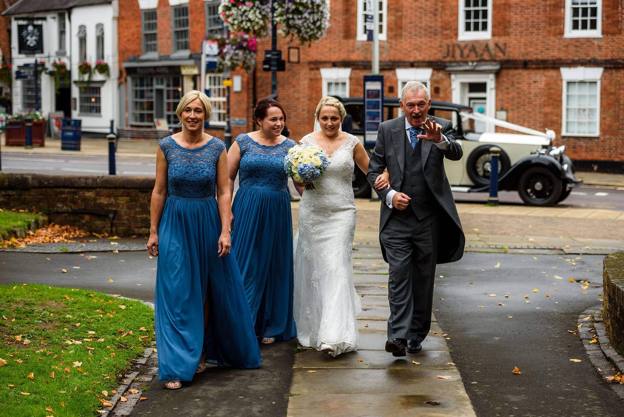 On their wedding day I arrived at Laura’s parents’ house in the morning where she was getting ready with her bridesmaids. Their house is in Solihull, only five minutes from St Alphege Church where the ceremony was held. Although the weather forecast suggested it would rain, we got lucky and avoided rain for most of the day apart from a light shower during the drinks reception at Wroxall Abbey. Wroxall Abbey is a beautiful country house in the Warwickshire countryside, just outside Warwick which had plenty of room inside and outside so that few minutes of rain didn’t disrupt anything except for delaying a few group shots.