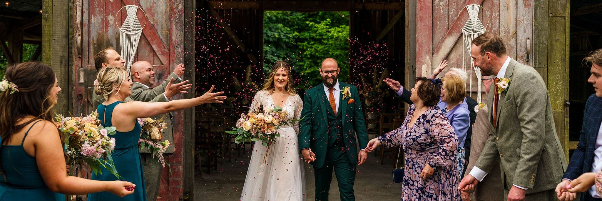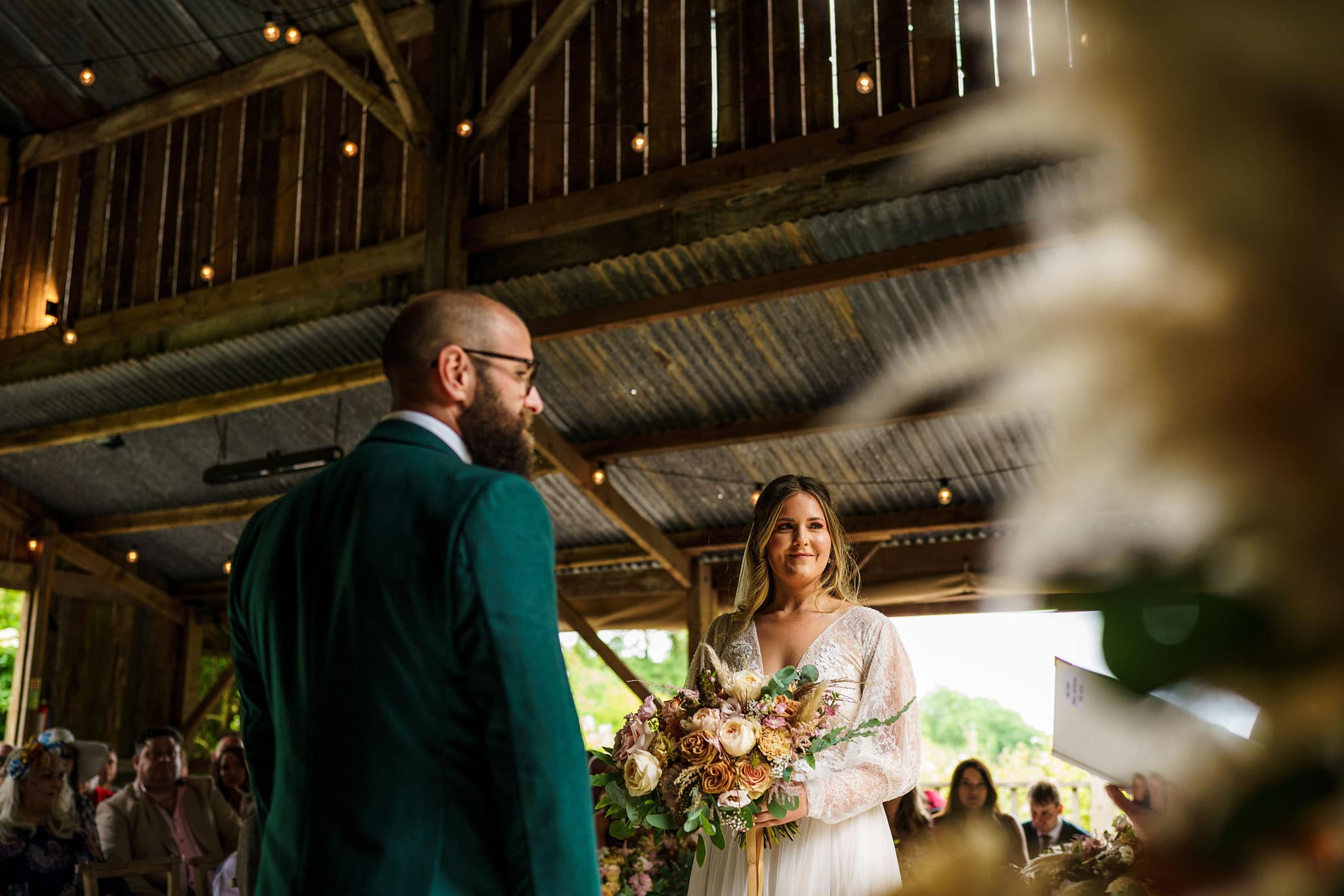 Emma & Adam choose to travel down to Cornwall to make a weekend of celebrations for their wedding. They found the ideal countryside location of Nancarrow Farm – a working organic farm as well as an events venue. There’s a beautiful rustic barn for the wedding ceremony, another stunning restored barn for the wedding breakfast, a farmhouse, pods and chalets for friends and family to stay in, and all surrounded by lovely gardens and fields. Then there’s the food – absolutely incredible!