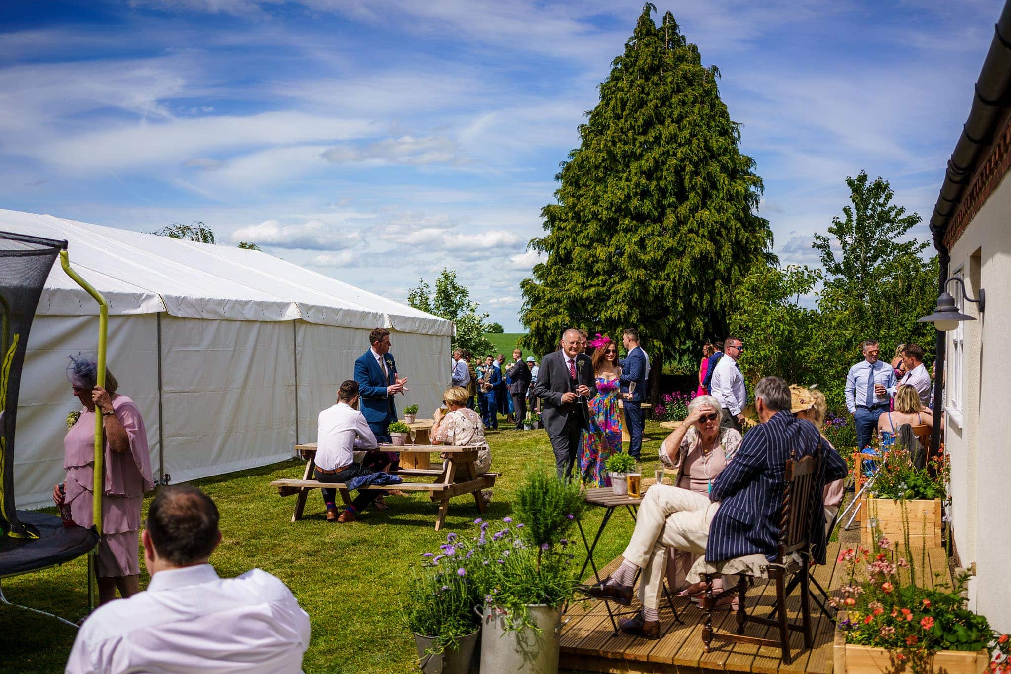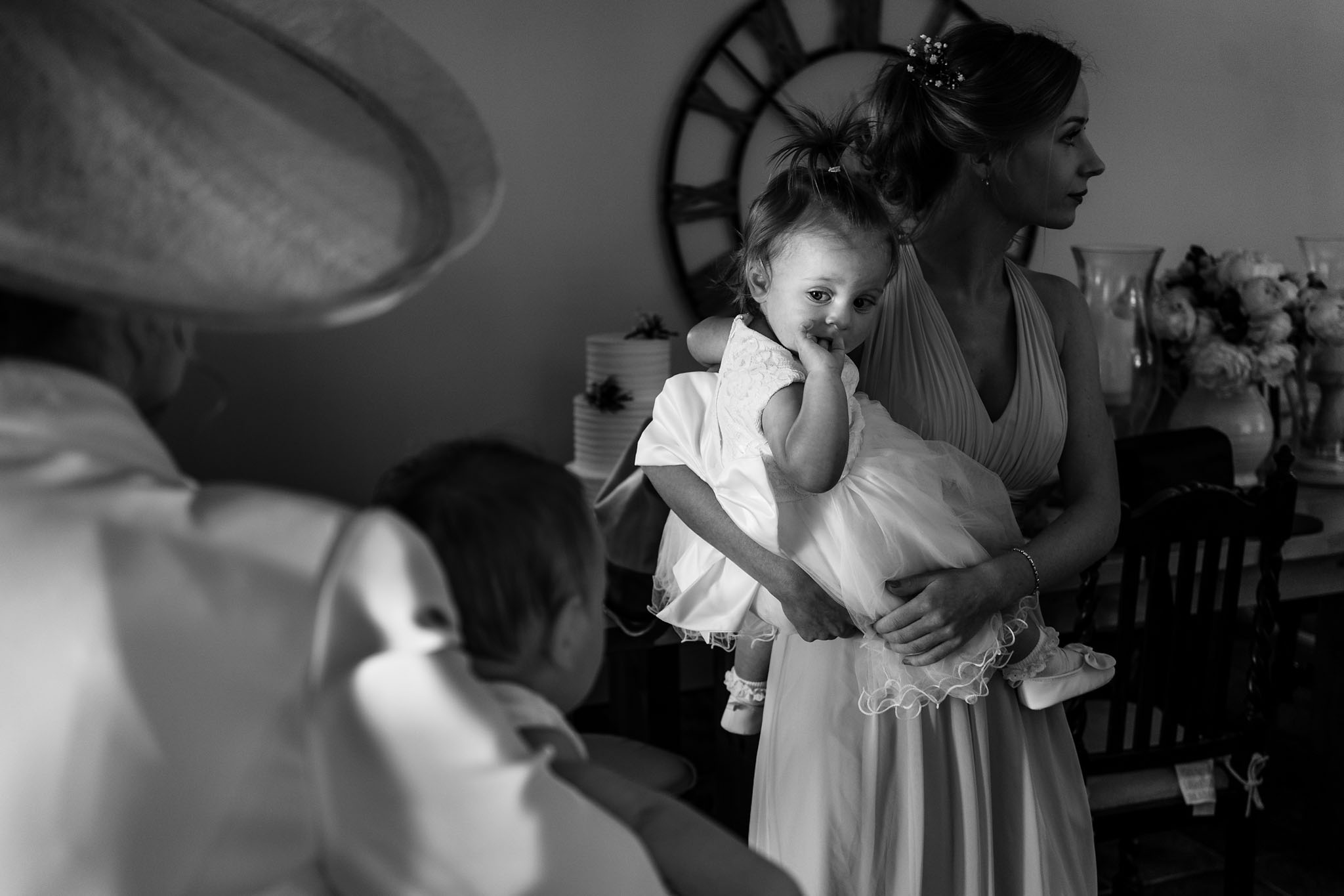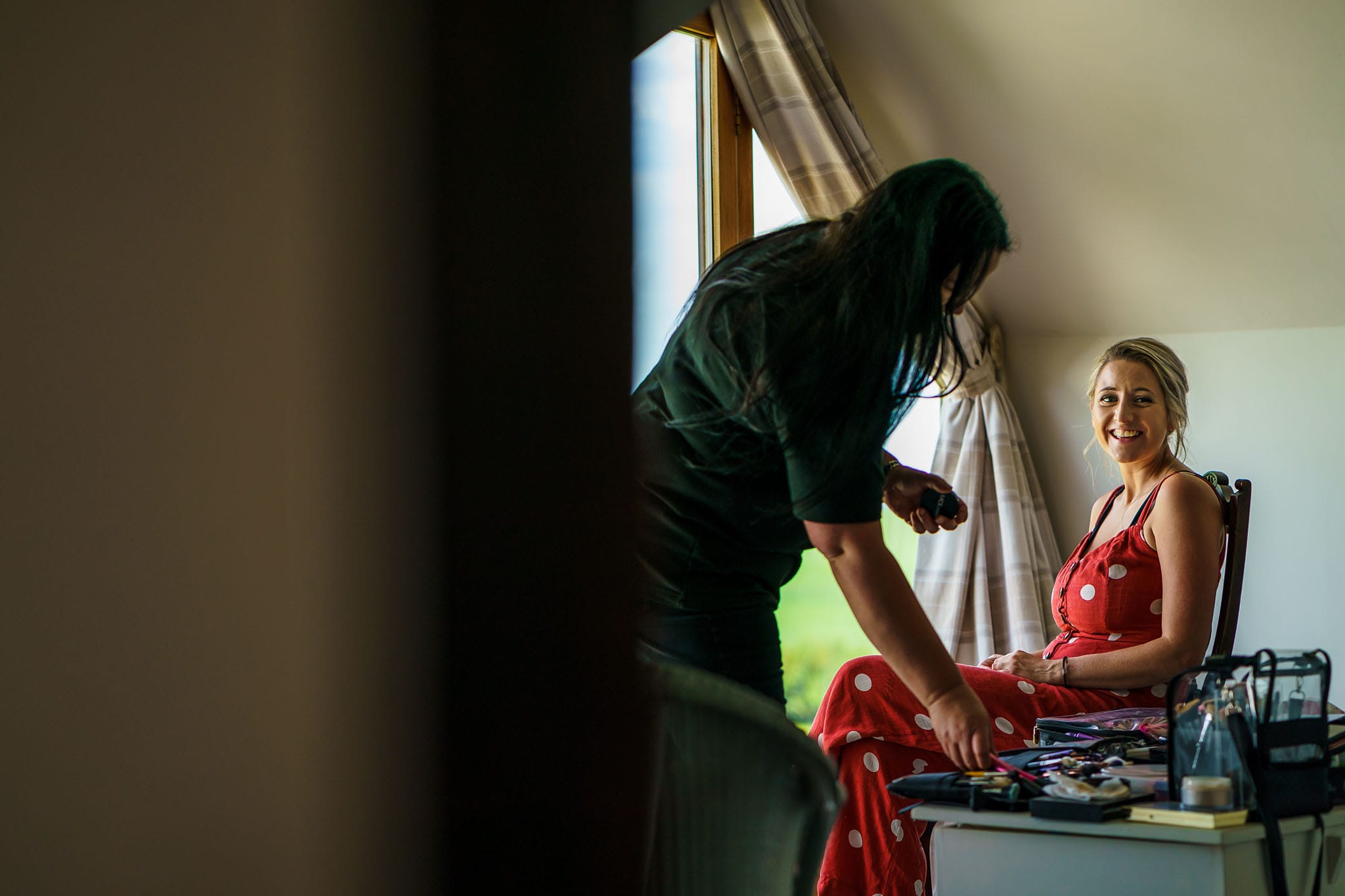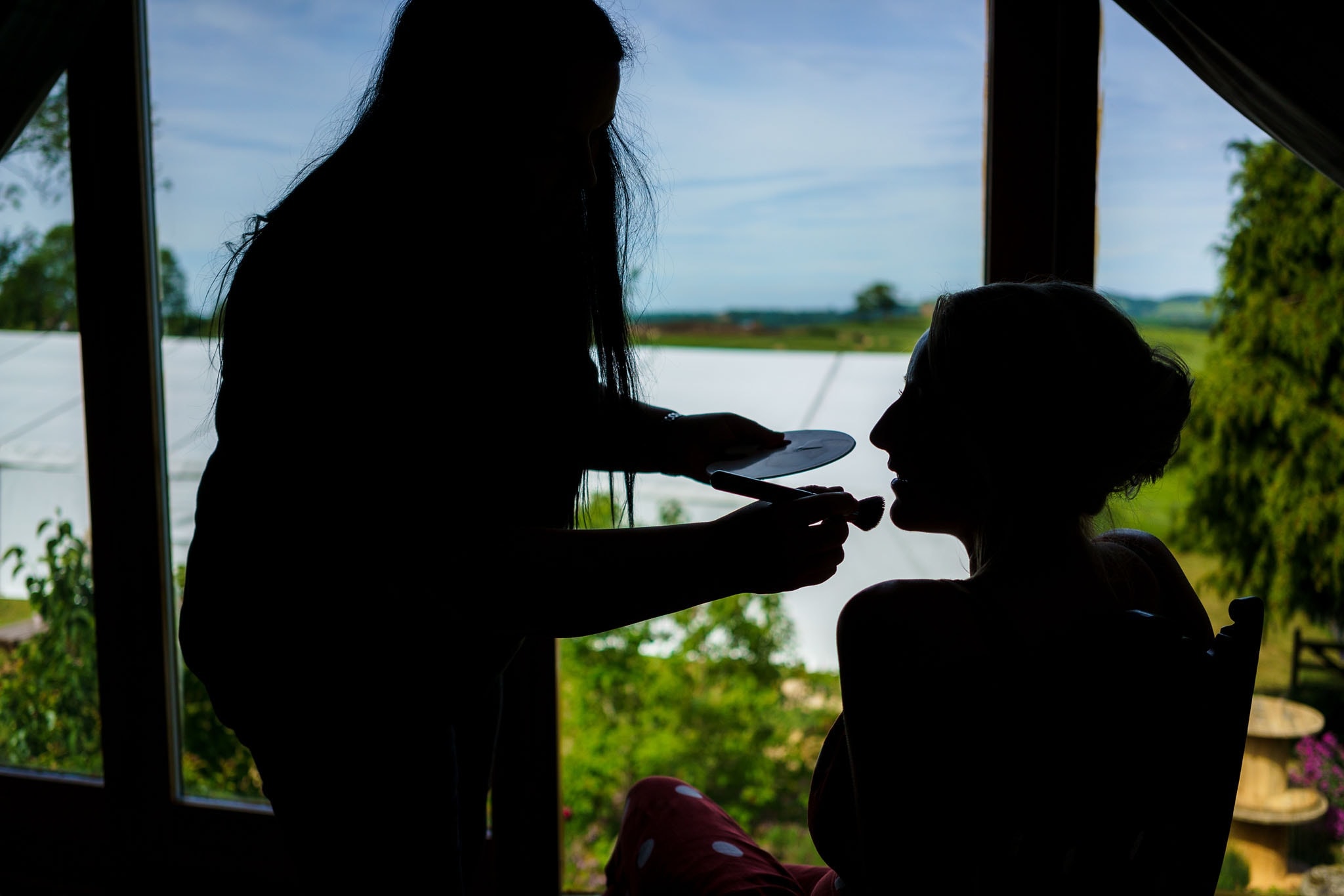 I started the day by joining Clarissa and her family at the family home where Clarissa was getting ready with her bridesmaid, parents, and the children. It was already a beautiful sunny morning and promised to be a hot day. The room Clarissa was getting ready in had a great view over the garden and the marquee being decorated below. Whilst I was shooting the girls, my second shooter, Mark, met the boys down the road at the local pub to capture some images of them having a pre-ceremony drink and meeting guests.