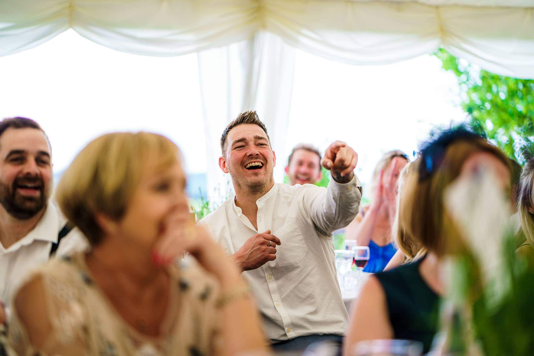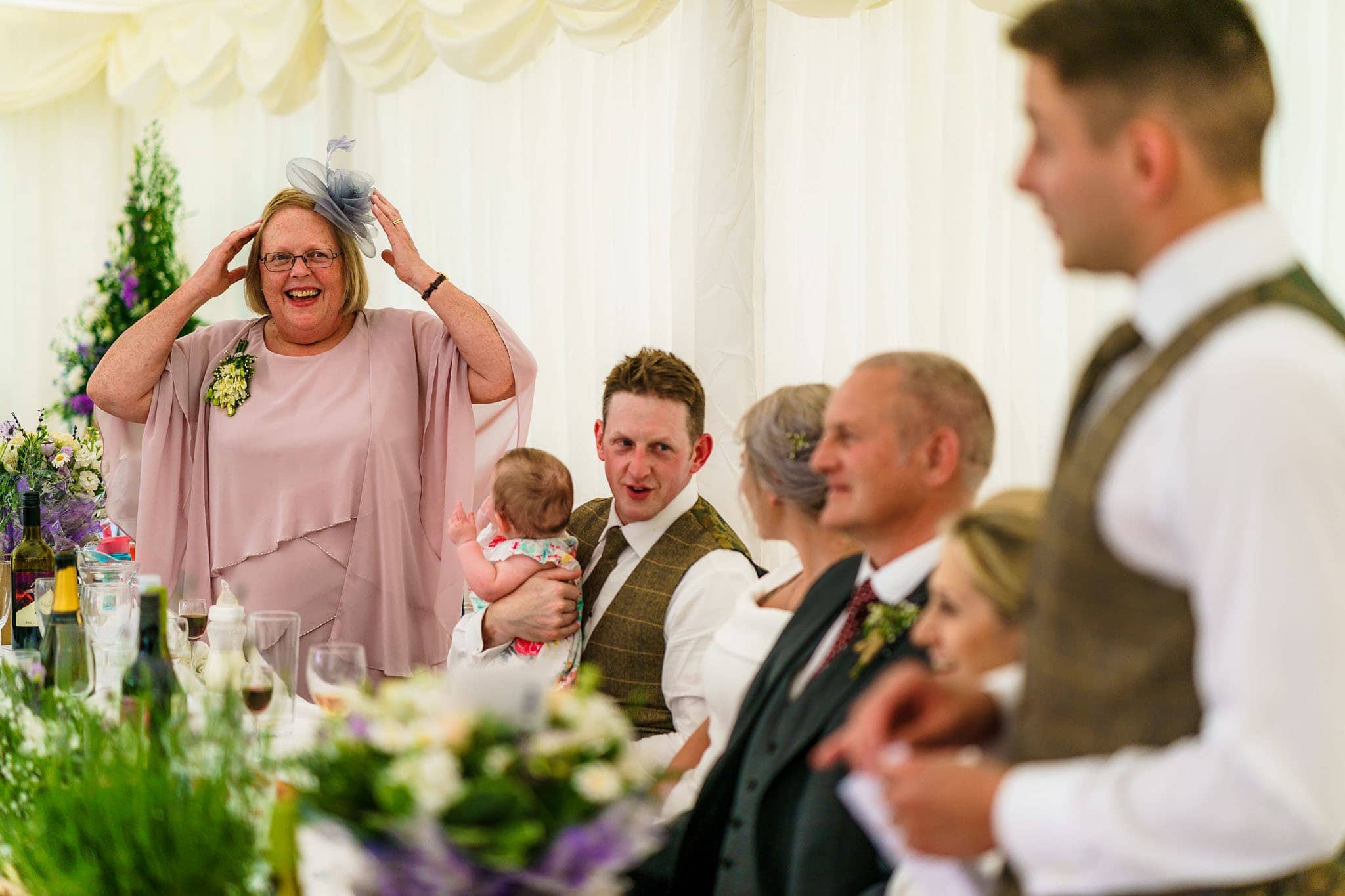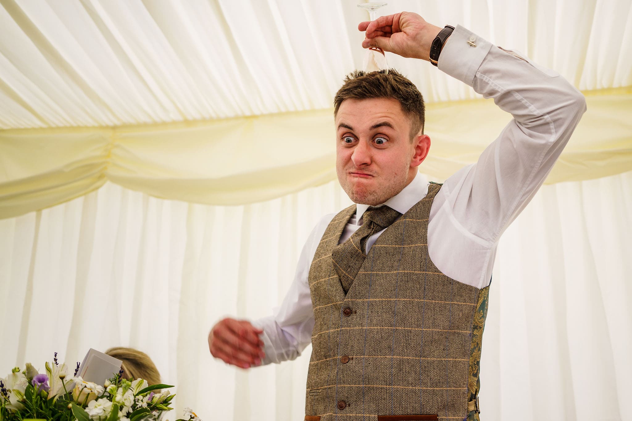 It was a lovely setting with views of rolling hills, and it remained hot and sunny all day! We did a few family photos and then some nice natural portraits of the happy couple together before their wedding breakfast started. The catering from NICuisine was superb I have to say! Some lovely speeches followed and were finished off with Clarissa’s brother leading a game of heads and tails to get everyone involved.
