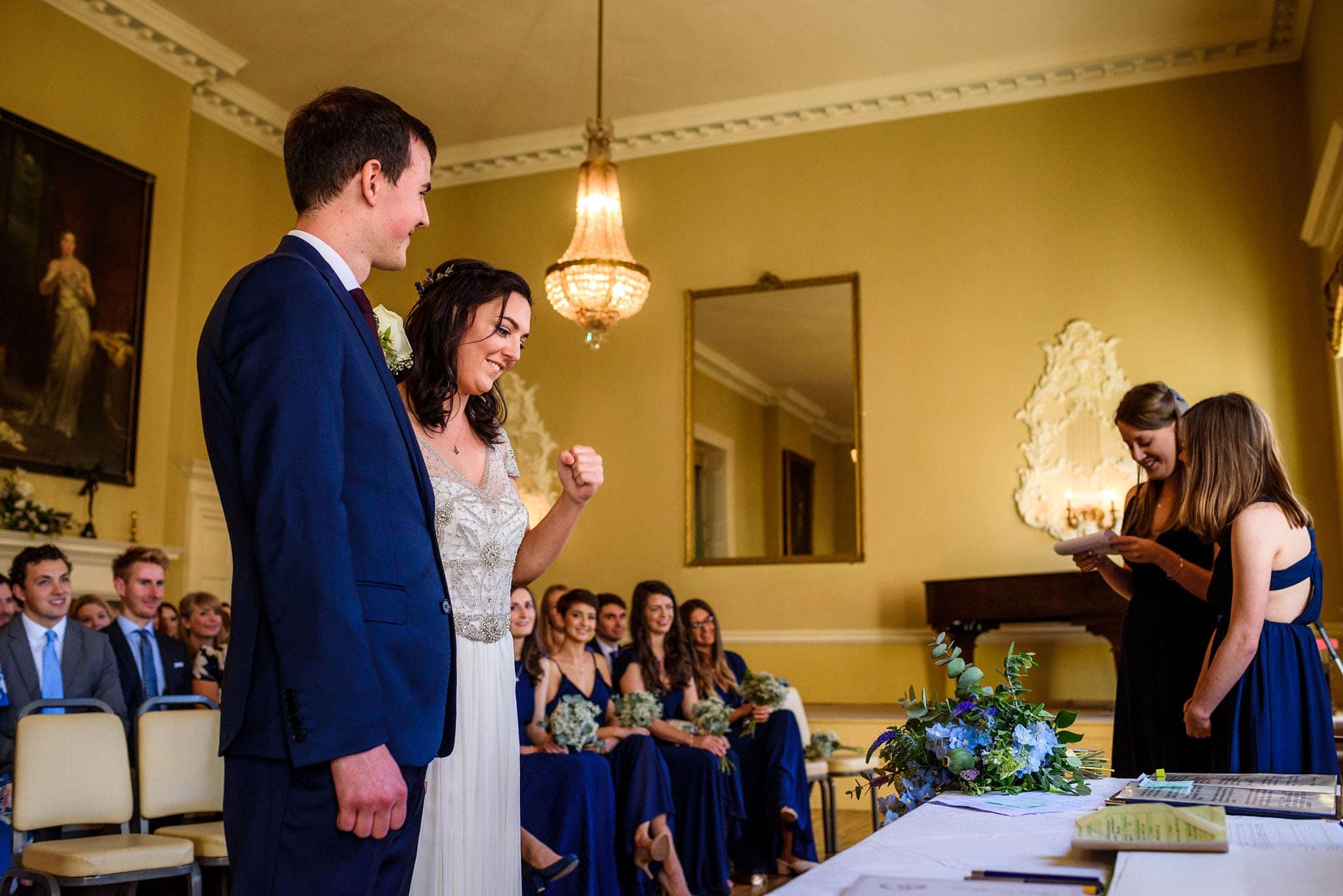 On the day of their wedding I arrived at Vics’ parents’ house in the morning for the bridal prep. The marque was setup in the garden with all the table laid and ready so I started with some photos in there before joining Vics and her bridesmaids doing their hair and makeup, all in one of the bedrooms. Once everyone was ready I got a lift with Vics’ mum to the ceremony at Stratford Town Hall to avoid any parking issues in the town centre.