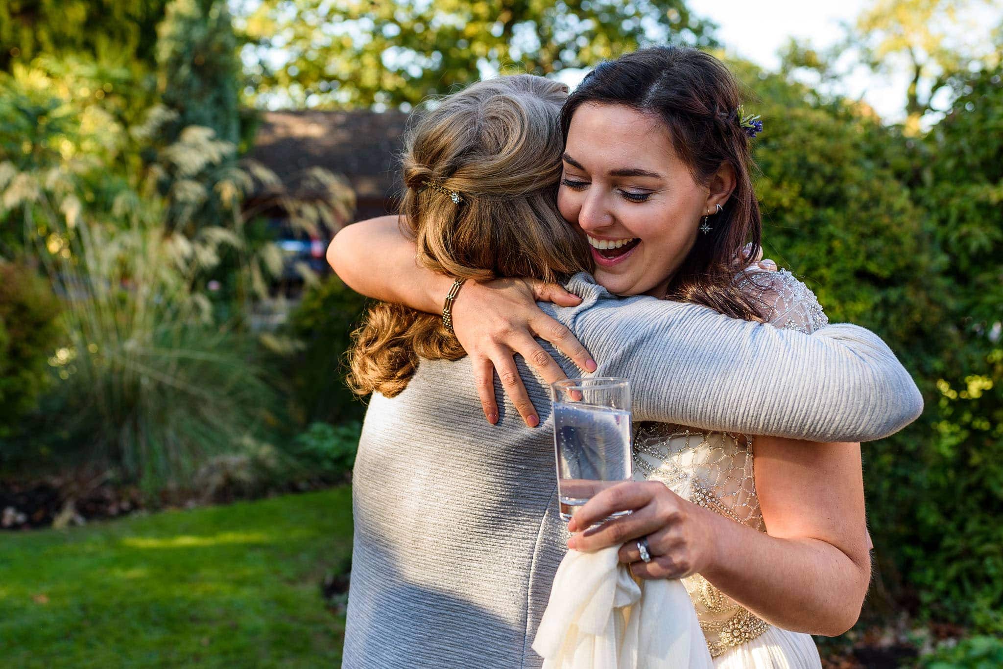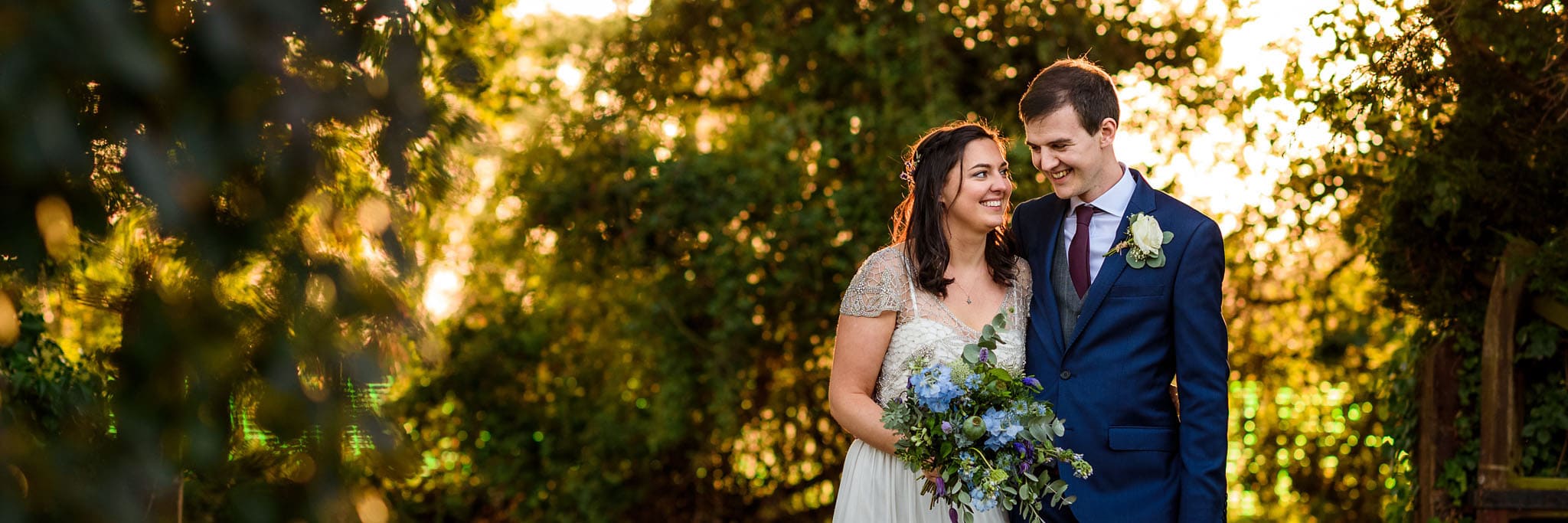 The town hall in Stratford is beautiful, with huge windows letting in plenty of light – makes a nice change from a dark church! It was a lovely ceremony followed by plenty of hugs and celebrations outside… then everyone headed back to Vics’ parents’ house for the reception. It remained bright and sunny throughout the afternoon until the sun started to set in the early evening. This was the perfect opportunity to take a few portraits of Vics and Matt on their own – the warm evening light was incredible!