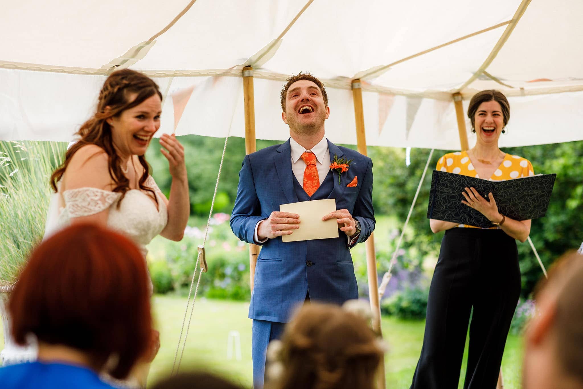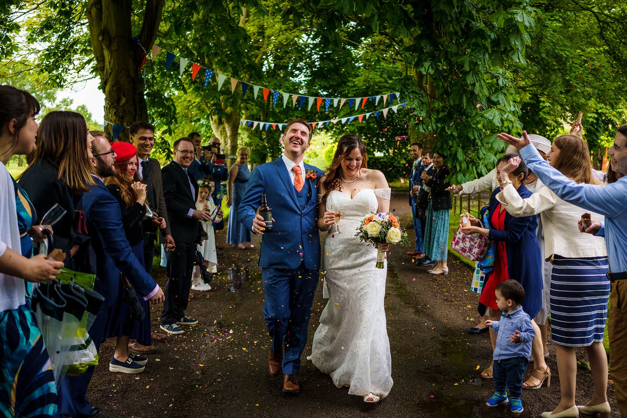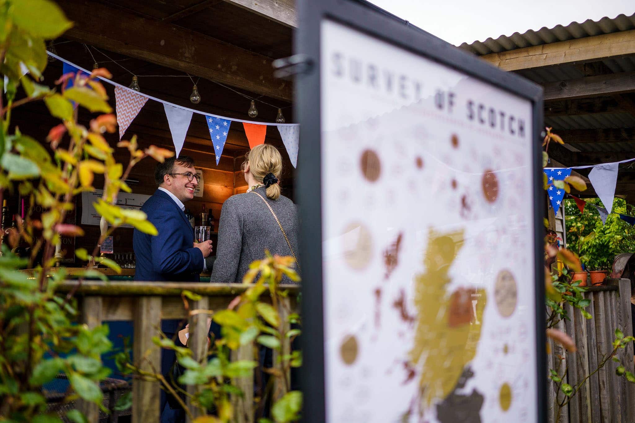 They had an outdoor ceremony, although sheltered under an open sided marquee – just as well they had cover as the heavens opened towards the end of the ceremony with a massive down pour. As the weather wasn’t playing ball at the time, the drinks reception started inside Talton House. As soon as the rain stopped, we popped outside for some family group shots and confetti. Then Claire and Will led a procession through to the walled garden where the tipi, the bar and plenty of lawn games were waiting.