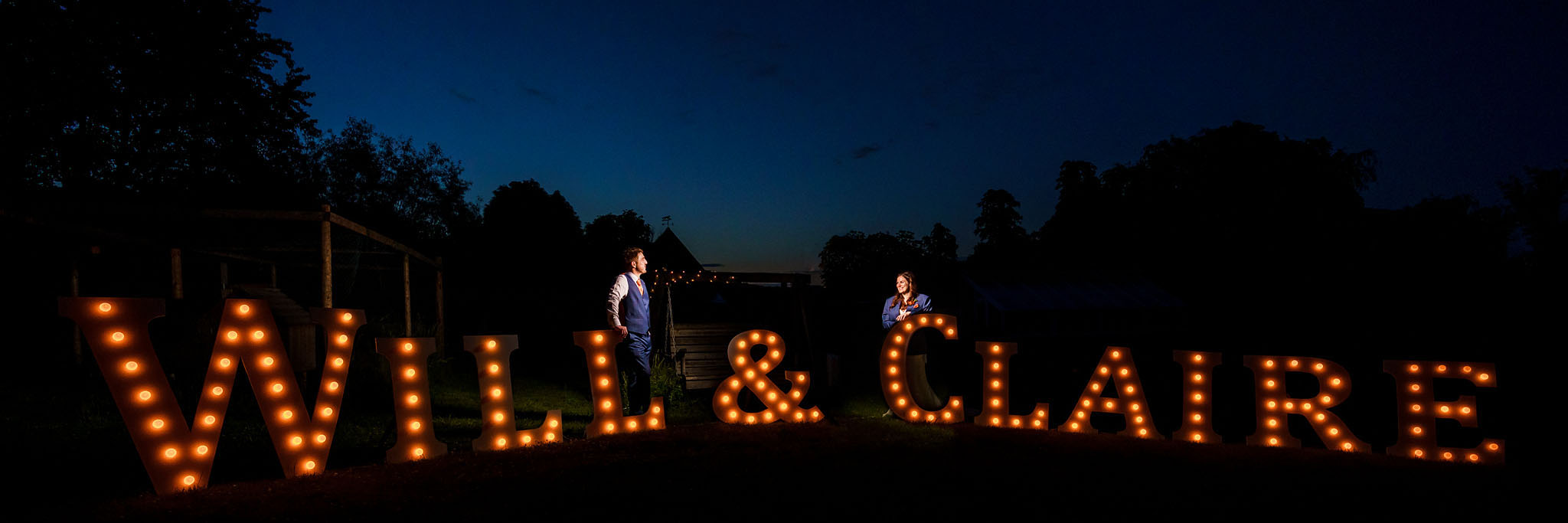 We finished with a night time shot of Claire and Will with the light up letters they made. What a wedding!