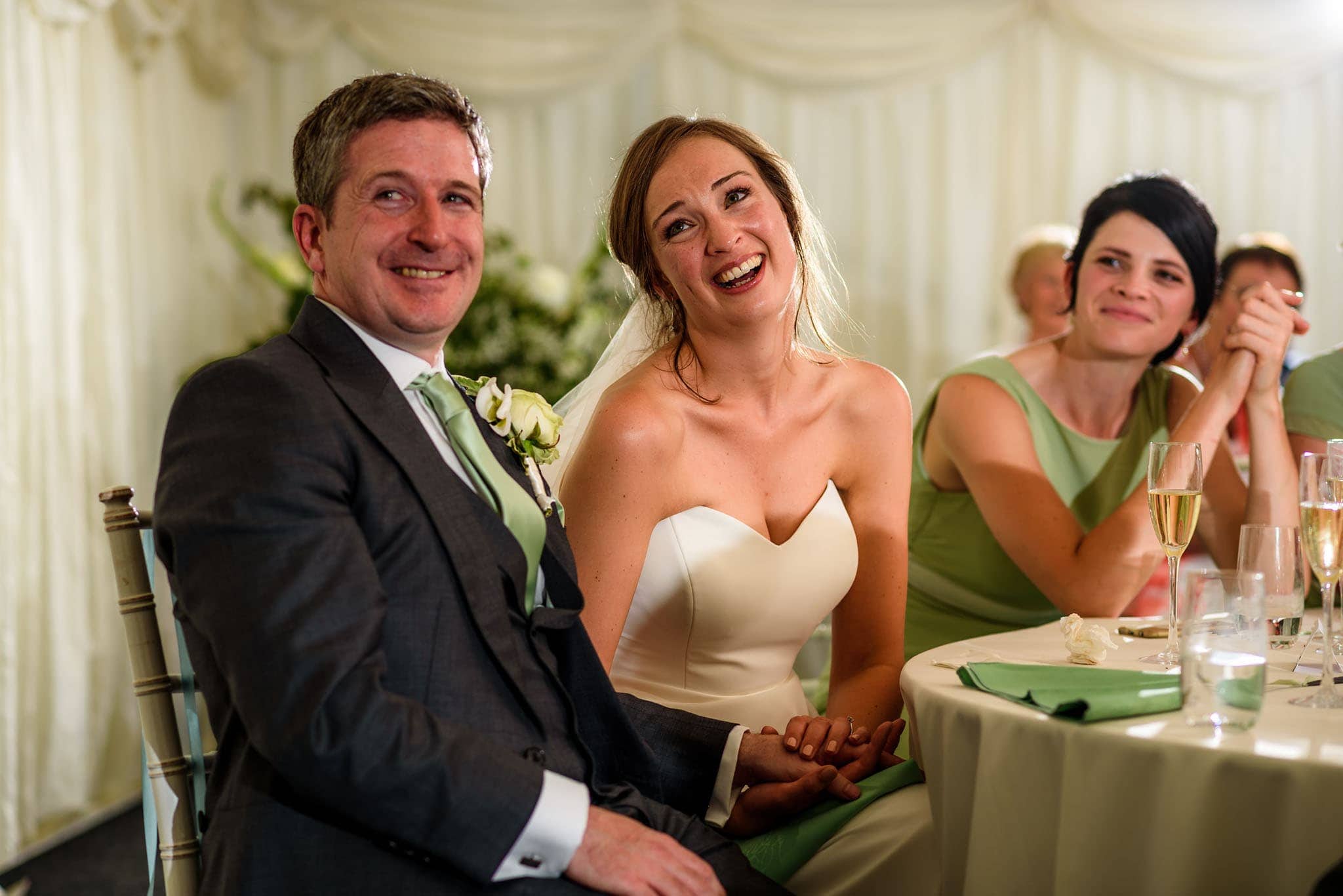 It was a beautiful warm and sunny day – great for a marquee wedding such as this. They had a marquee set up in the garden for the wedding breakfast with plenty of space around it for the children to run around and play. Drinks were served alongside canapés (including an oyster bar!) in the garden before it was time to sit down for the wedding breakfast. After the food there were a great set of speeches before everyone headed back outside to enjoy the last of the evening sunshine.